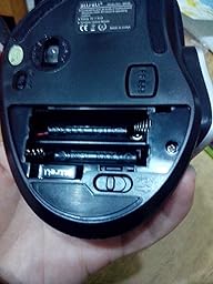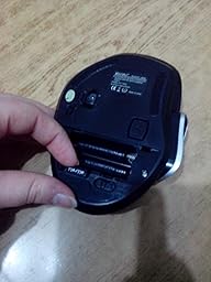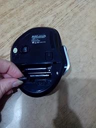 Nella parte inferiore troviamo il vano batteria, dove all'interno troviamo la chiavetta USB, il tasto Press che servirà per regolare la posizione del poggia pollice ,il tasto On/Off che serve per spegnere / accendere il mouse